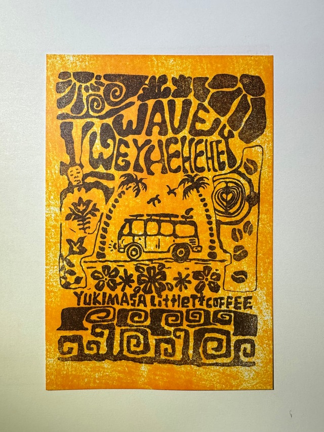 消しゴム版画作品で制作した版を捺して、ドリップバッグコーヒーのパッケージにしています。