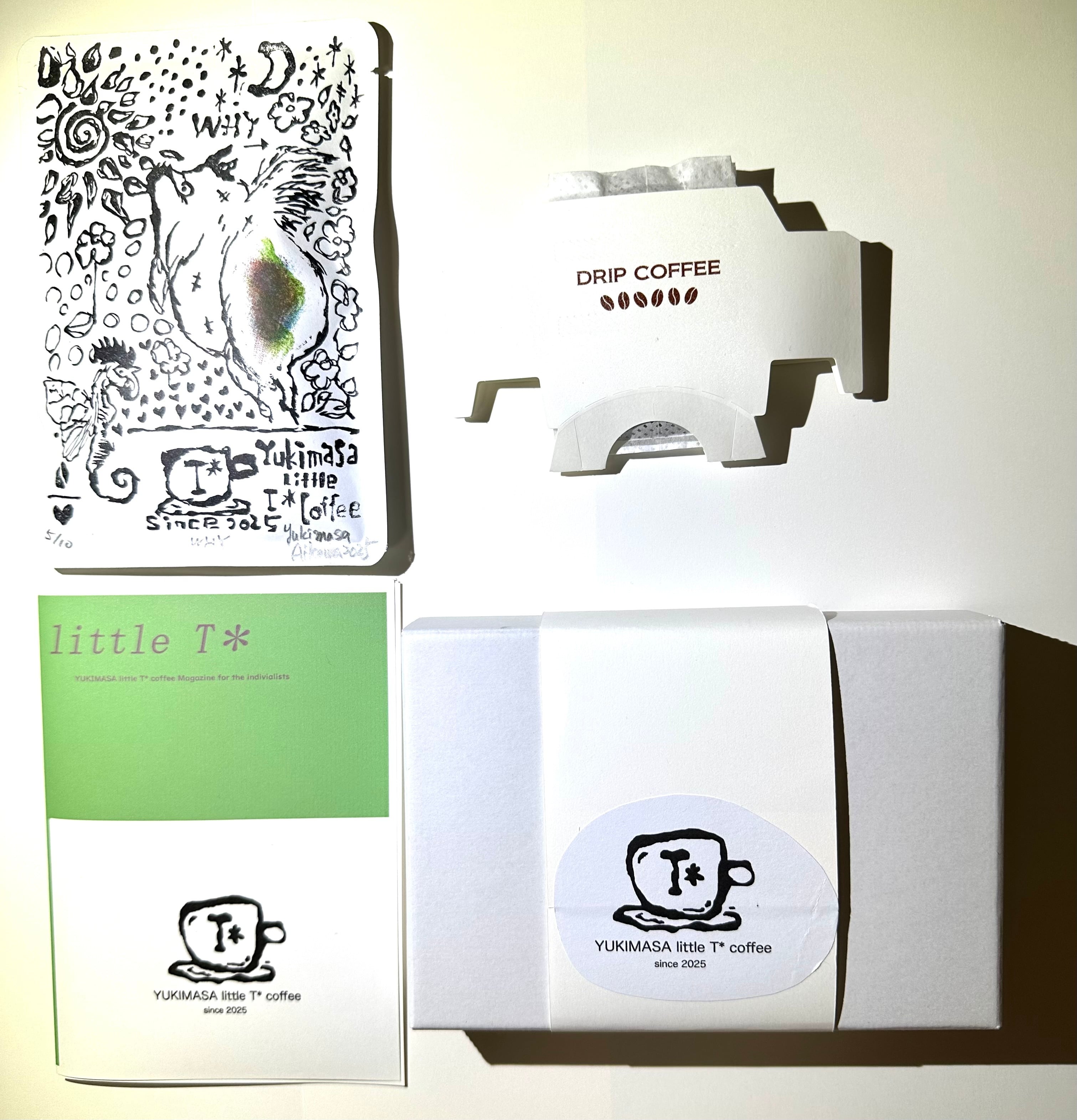 私が制作した消しゴム版画をパッケージにしたオリジナルブレンドドリップバッグコーヒーです。