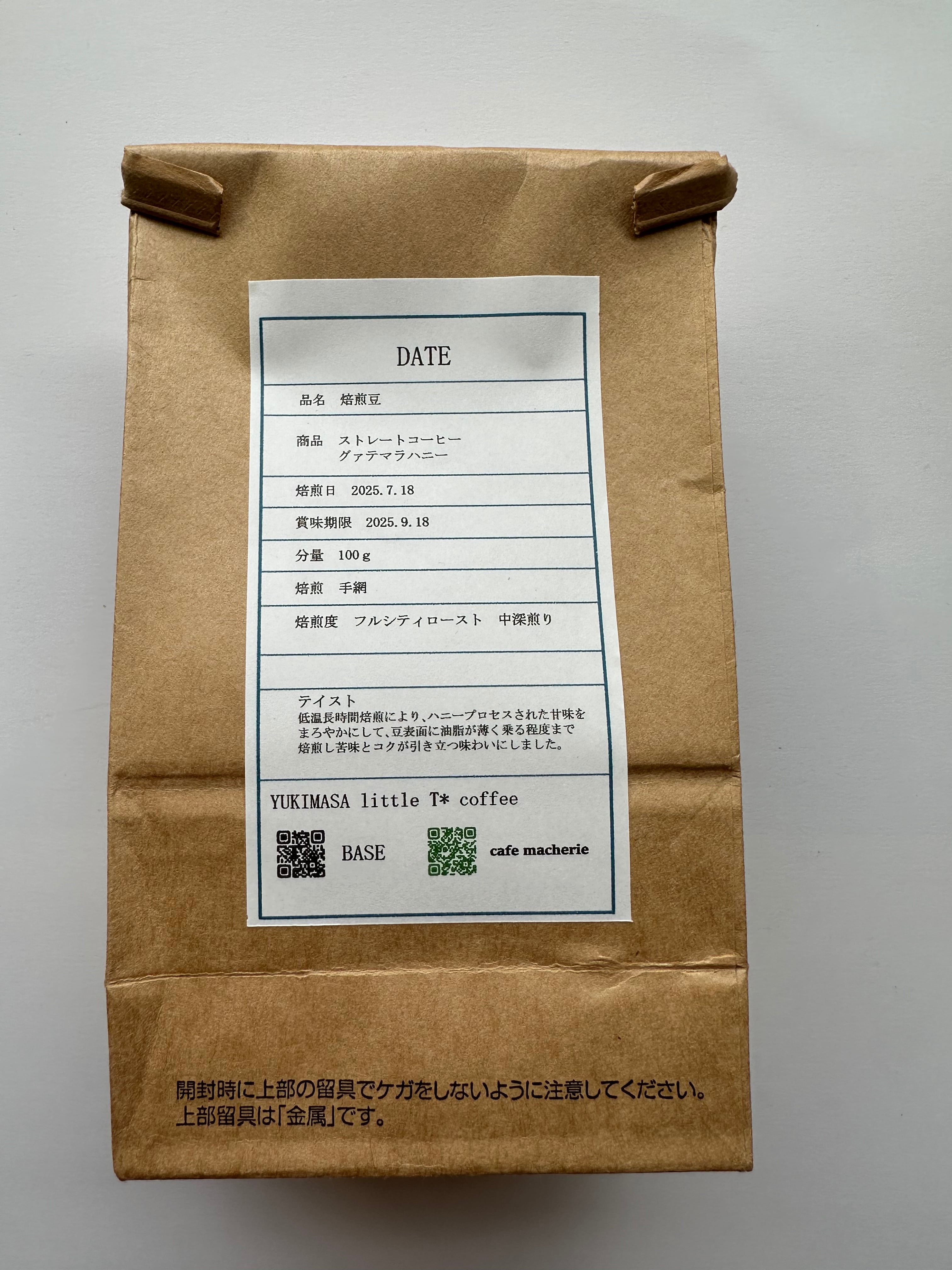 中煎りに分けたダブル低温長時間焙煎により、2つの違う甘味とグァテマラハニーの少しの酸味、そして低温長時間による滑らかで飲みやすい味に仕上がっています。