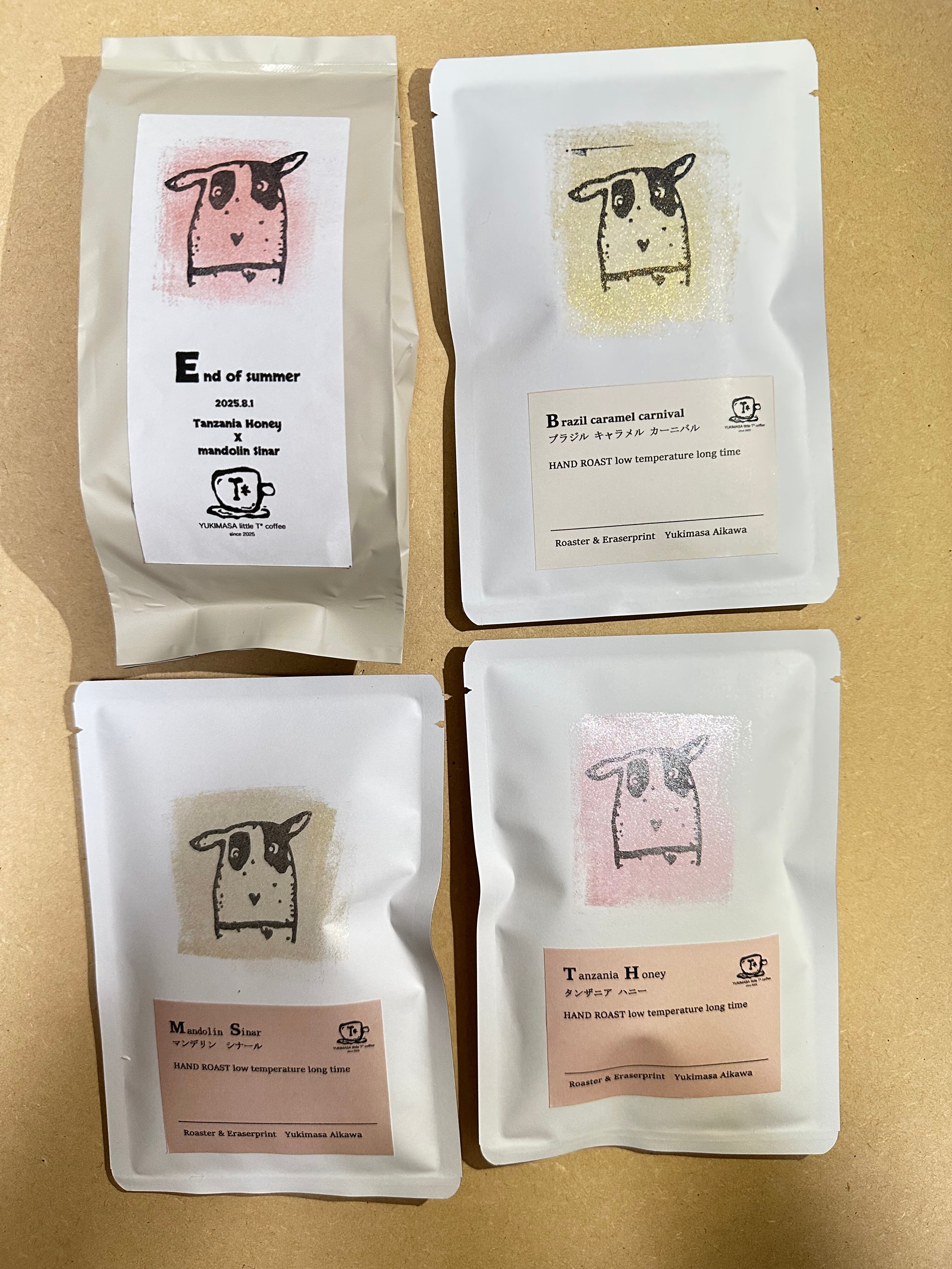 タンザニアハニーとマンデリンシナールを手網低温長時間焙煎により芯まで焙煎し酸味を出来る限りなくし、マンデリンは中煎り、タンザニアハニーは中深煎りまで個別に焙煎しました。