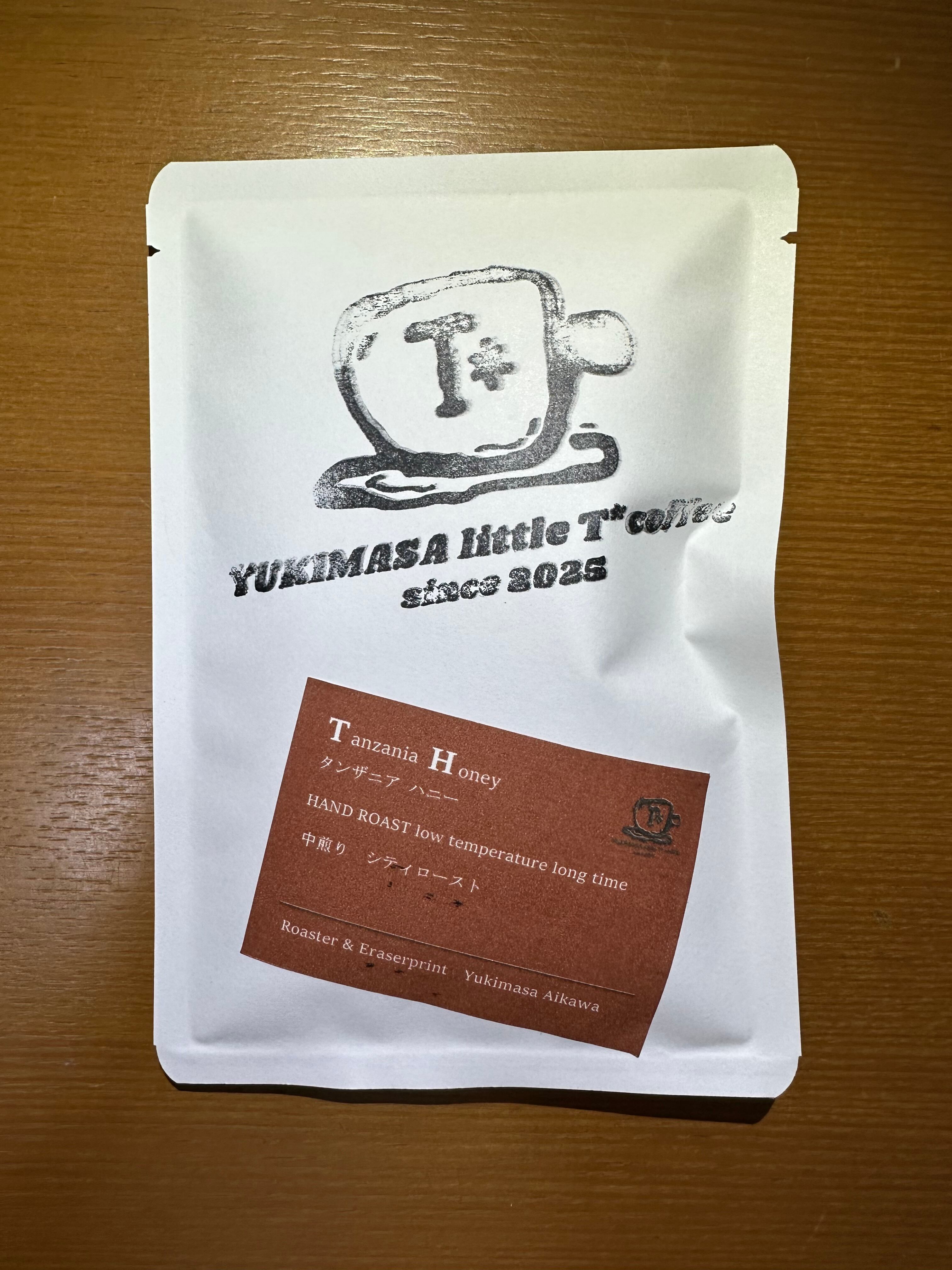 パッケージは、消しゴムはんこで制作したユキマサリトルティースターコーヒーのロゴを捺しました。