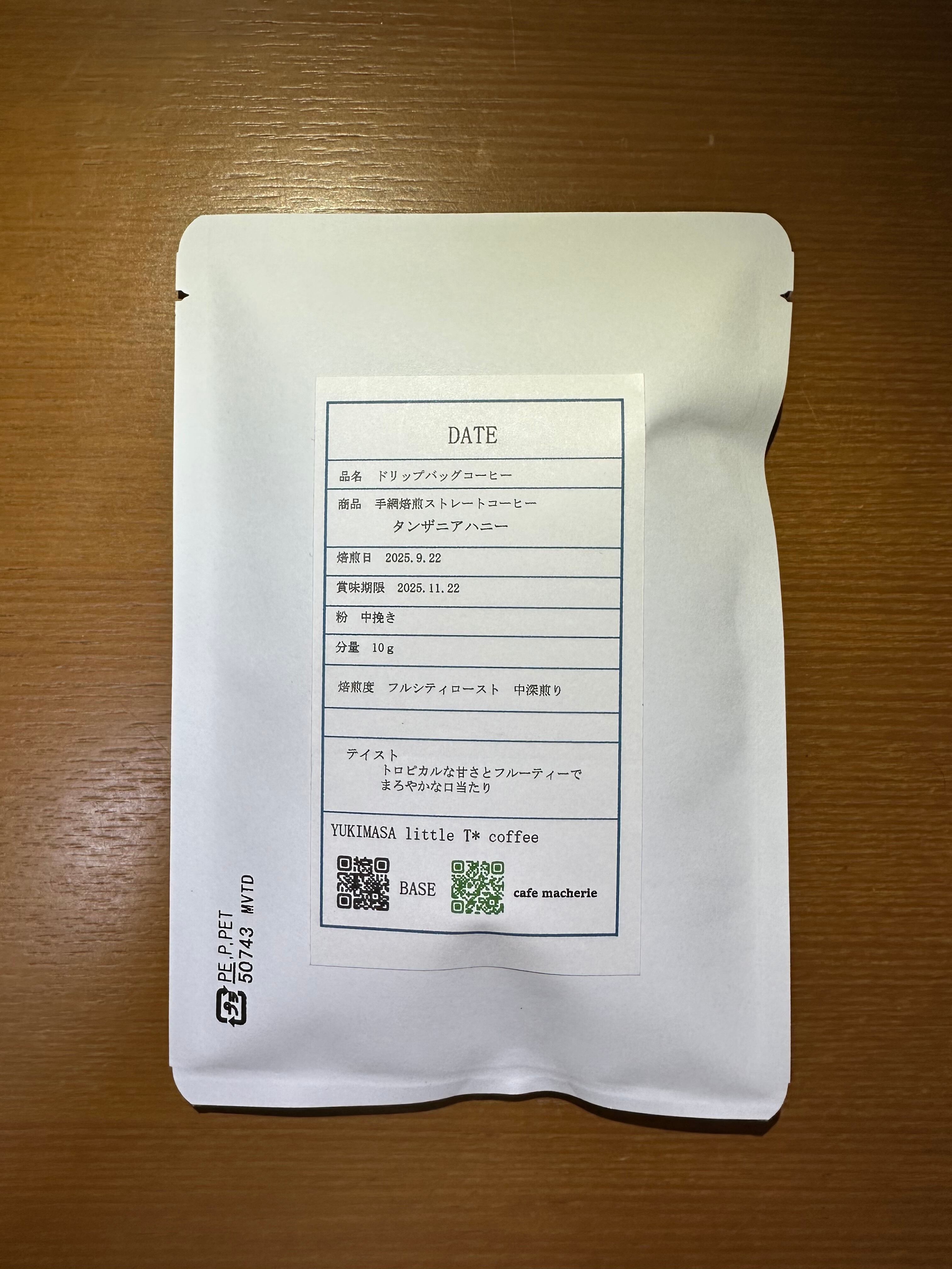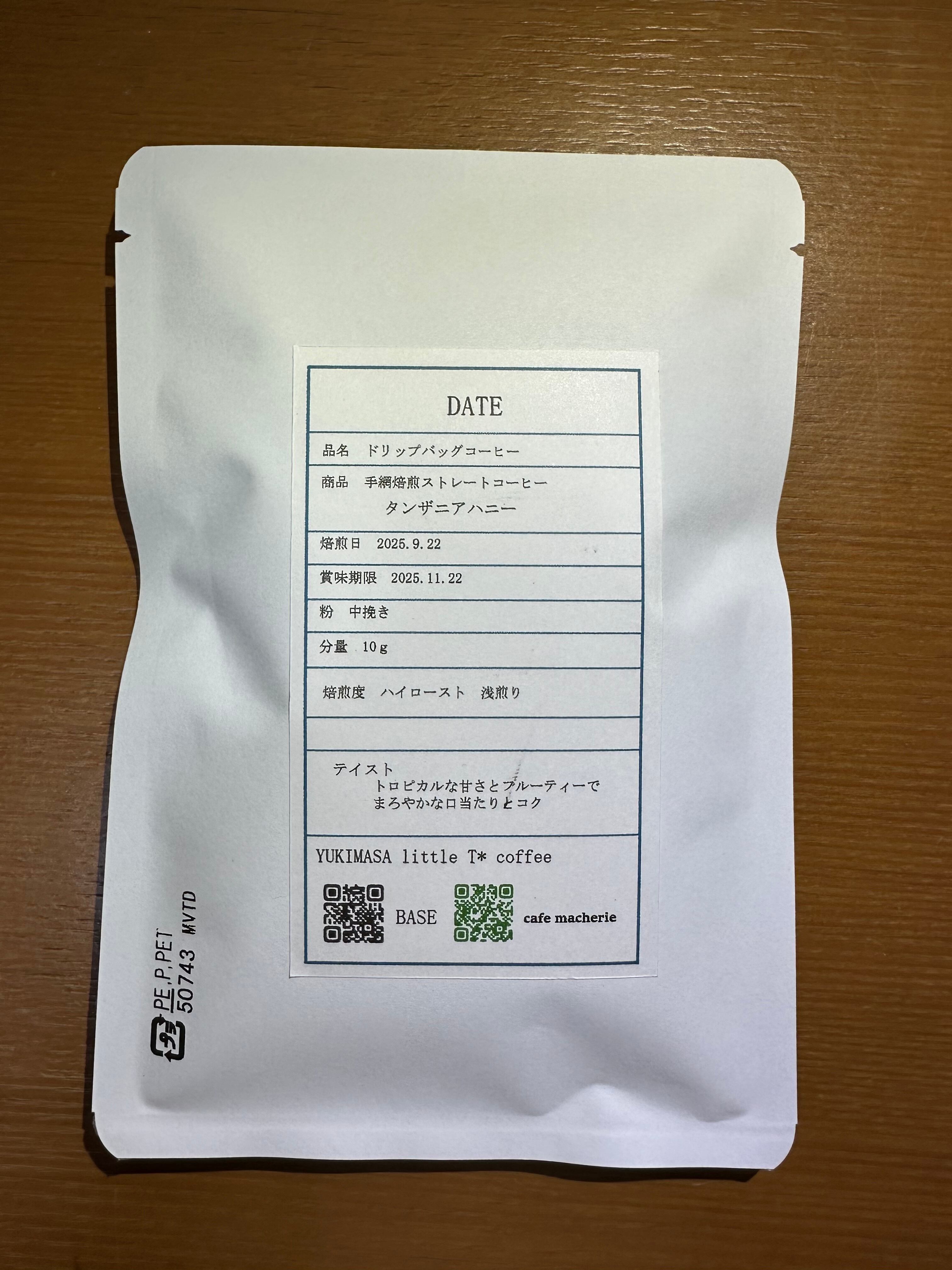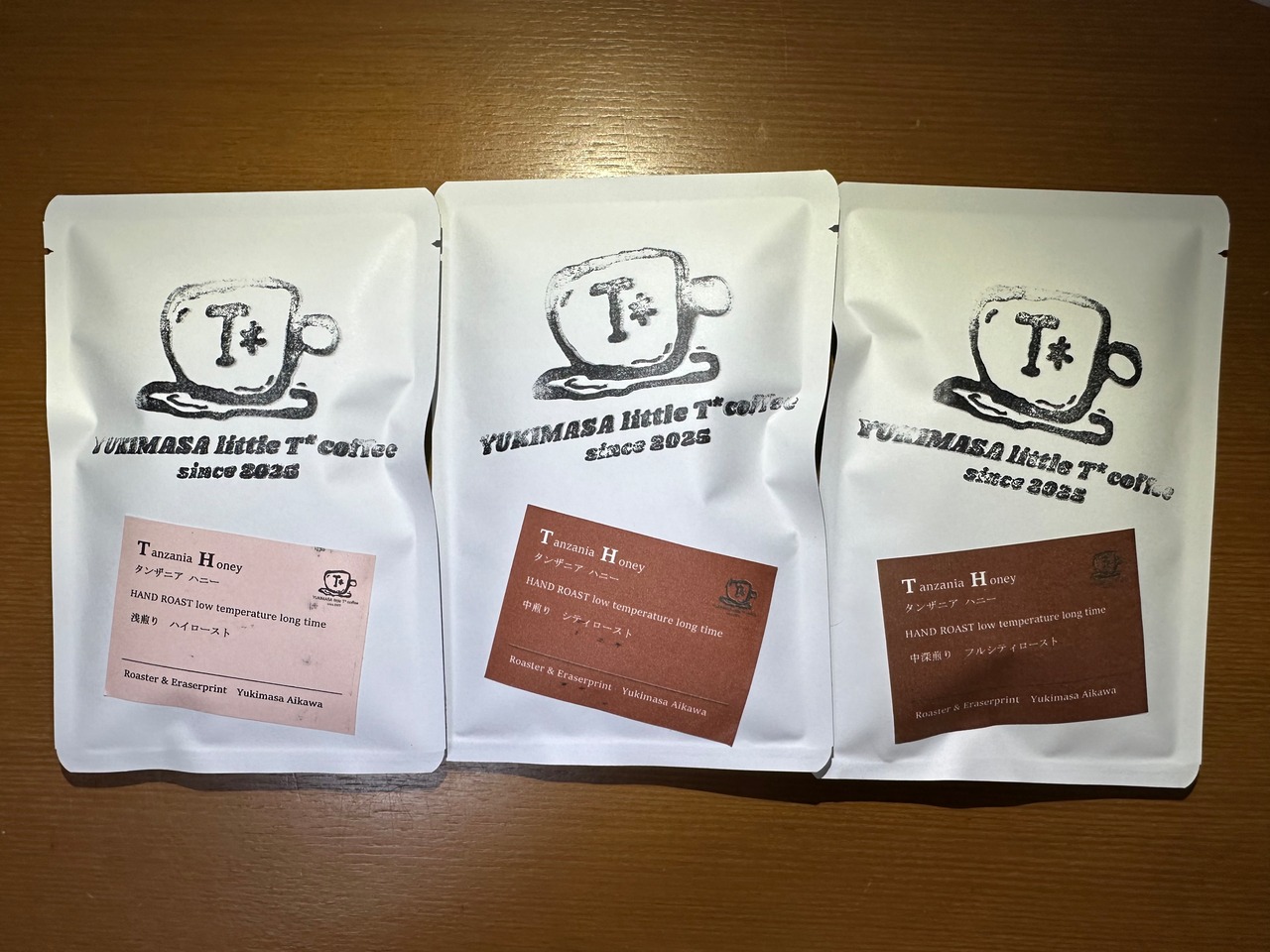 タンザニアハニーを手網焙煎で浅煎り中煎り中深煎りの3段階に分けたドリップバッグ3袋セットです。