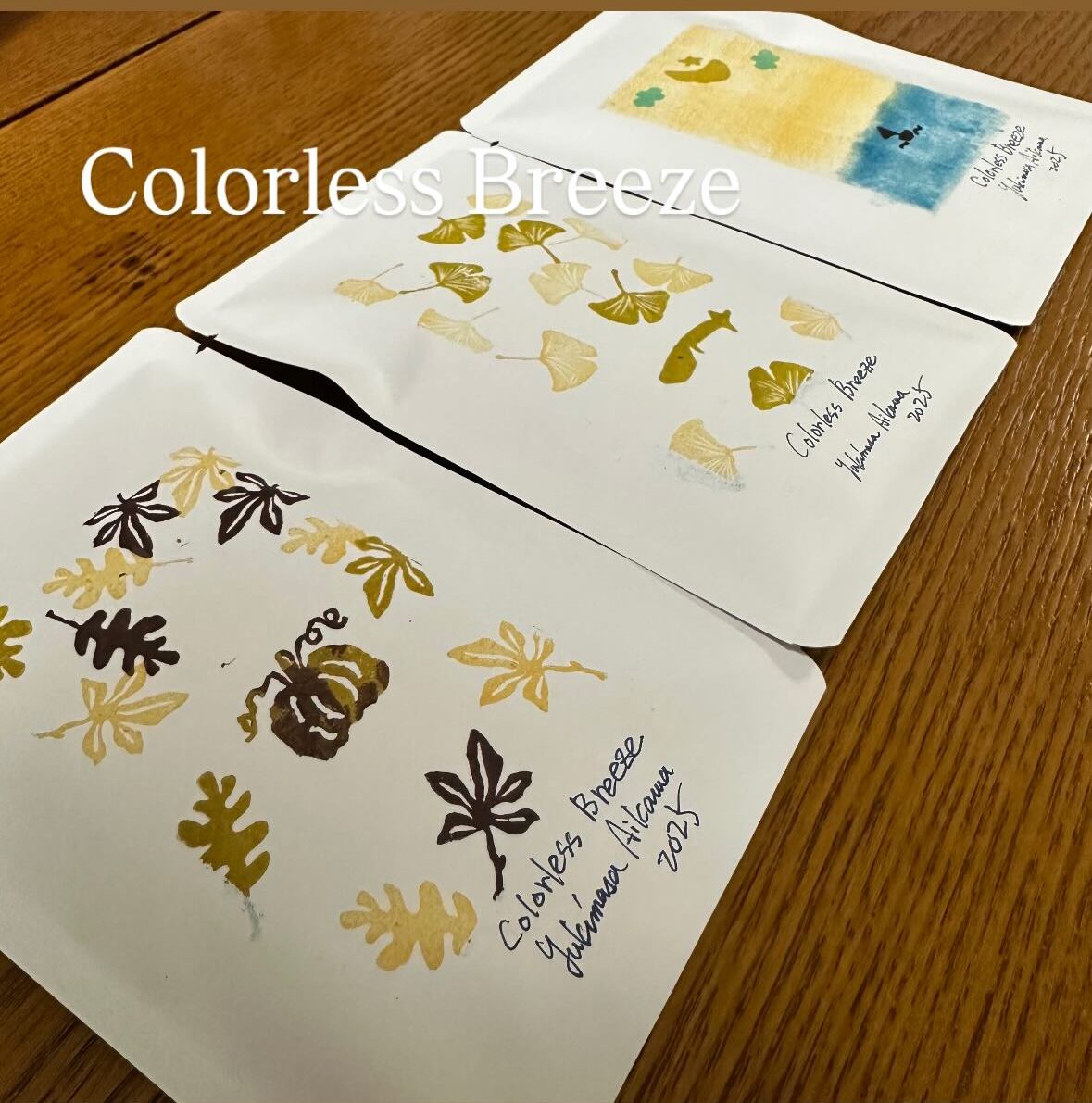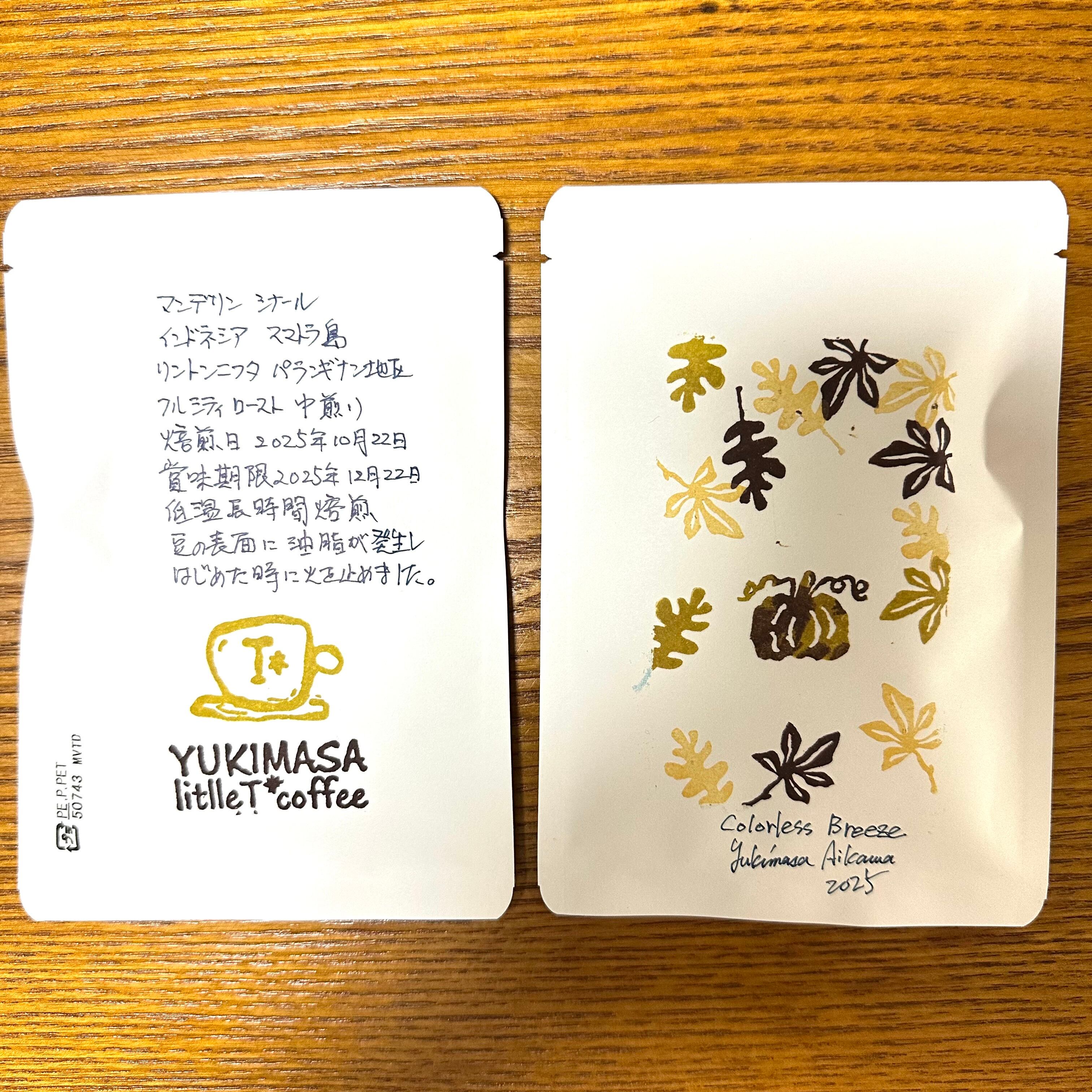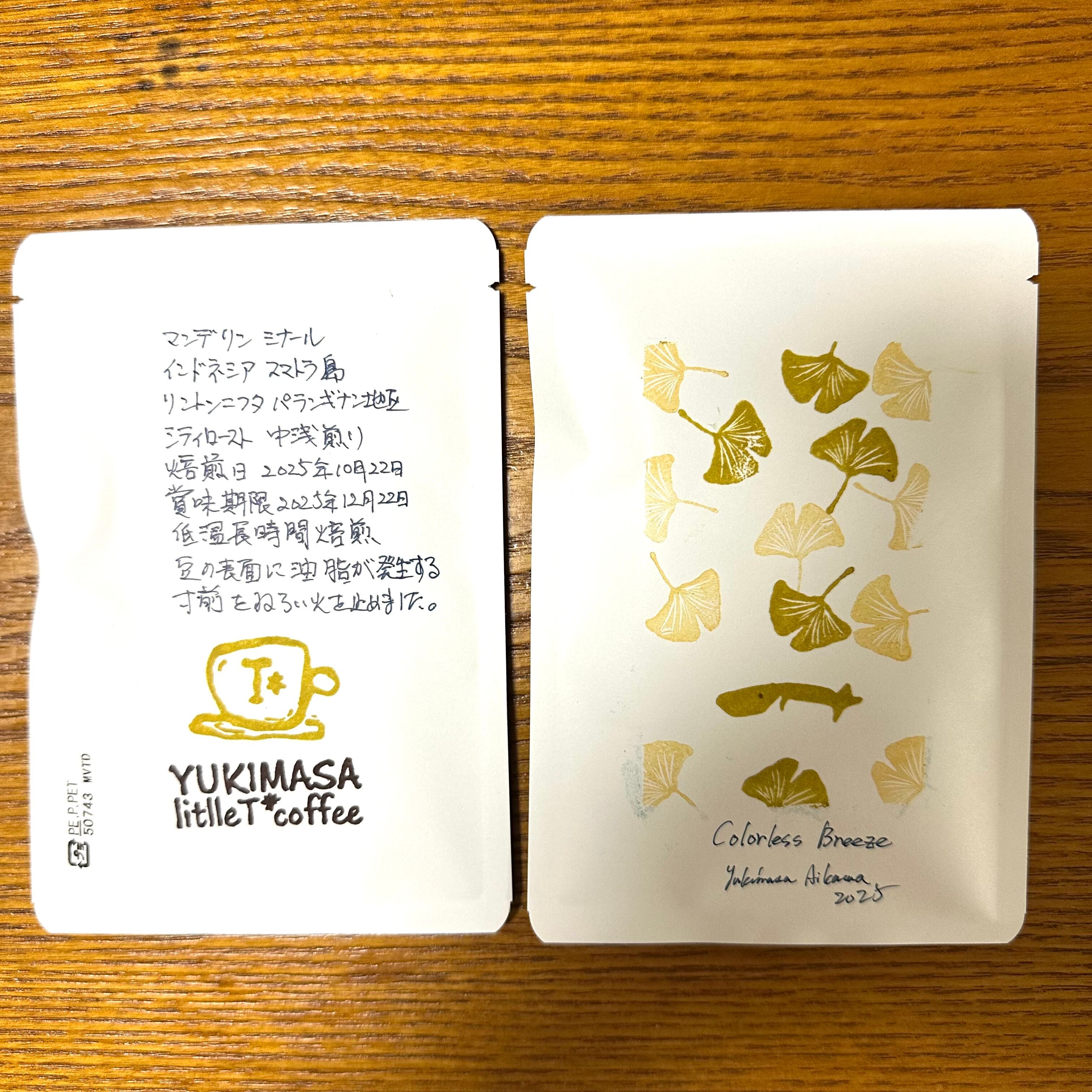 ハイロースト、シティロースト、フルシティローストの3種の焙煎を揃えました。パッケージは実際に消しゴムはんこでデザインし秋に感じる凛としたそよ風、透明感のある空気を感じる、そんな作品です。